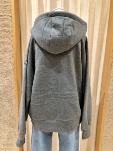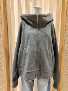 立ち上がりのきれいなフードと高めのネックデザインがポイントです。