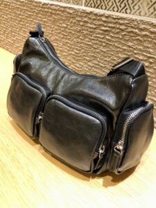 ショルダー部分は長さ調節が可能なので肩掛けも斜め掛けもできる仕様です。
