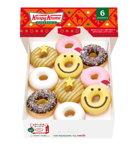 サンタ カスタード、リッチ ミルクティー ベア、 ストロベリー ホリデー ベルト、チョコレート スノーマン。 ホリデー限定ドーナツ4種に、定番のオリグレとチョコ スプリンクルを合わせて。 クリスマスプレゼントを開ける時のようなワクワクを、この6個ボックスで。