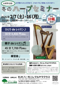 2026年2月7日(土)と16日(月)の2日間、「冬のハープセミナー」を開催します!