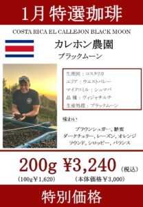 1月特選珈琲【コスタリカ カレホン農園 ブラックムーン】